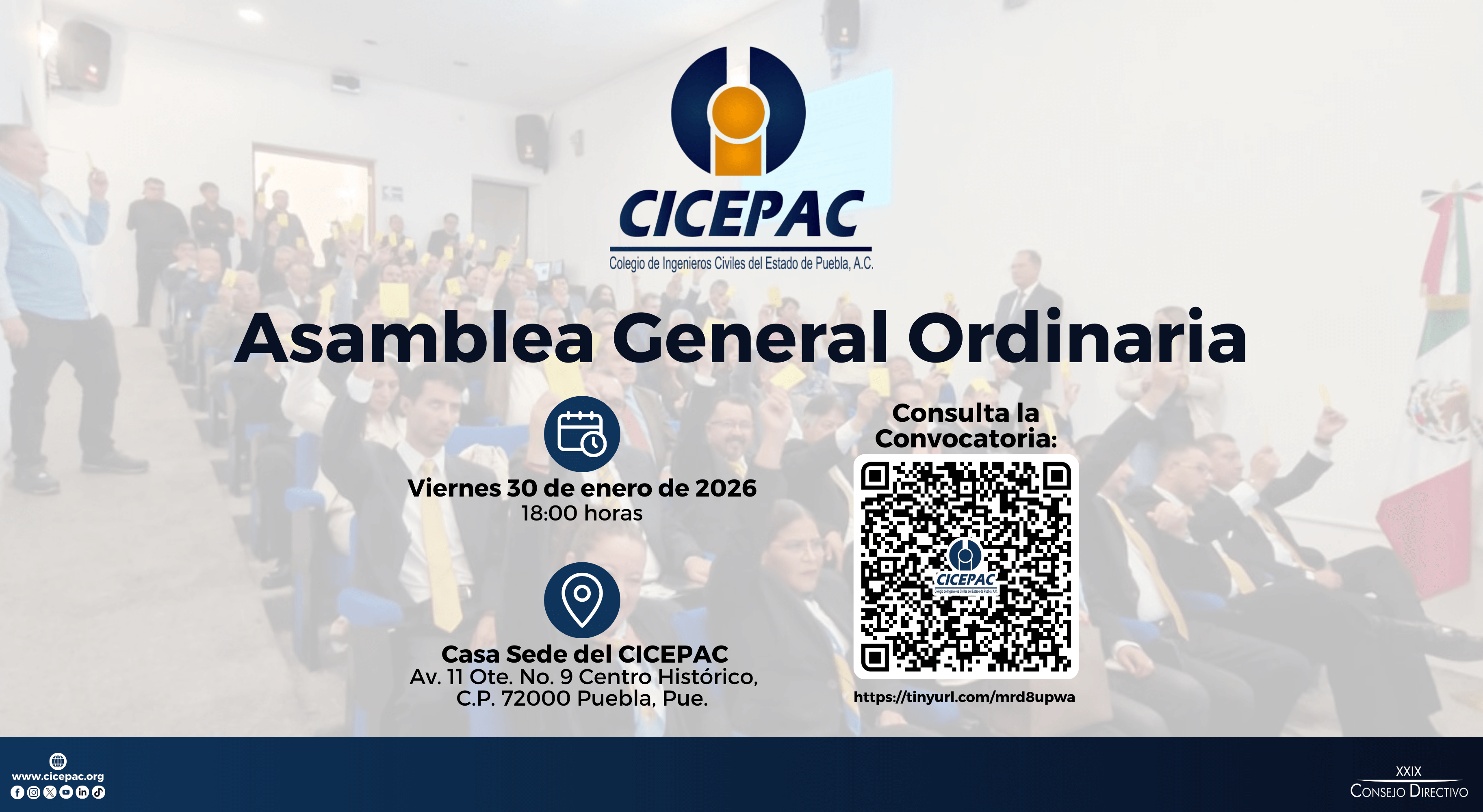 Todos ellos mexicanos de origen, dedicados al ejercicio de su profesión, acordando así formar el Colegio de Ingenieros Civiles de Puebla bajo la forma legal de Asociación Civil con dirección Avenida 2 Poniente 101 despacho 413 de esta ciudad. Constituido el día 22 de Septiembre de 1967.